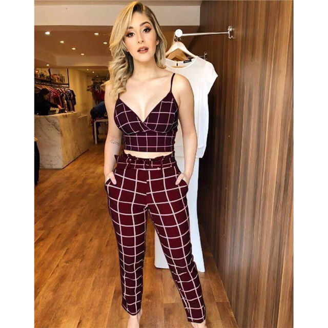Checkered Terno Set (Crop Top+Pants) Shopee Philippines