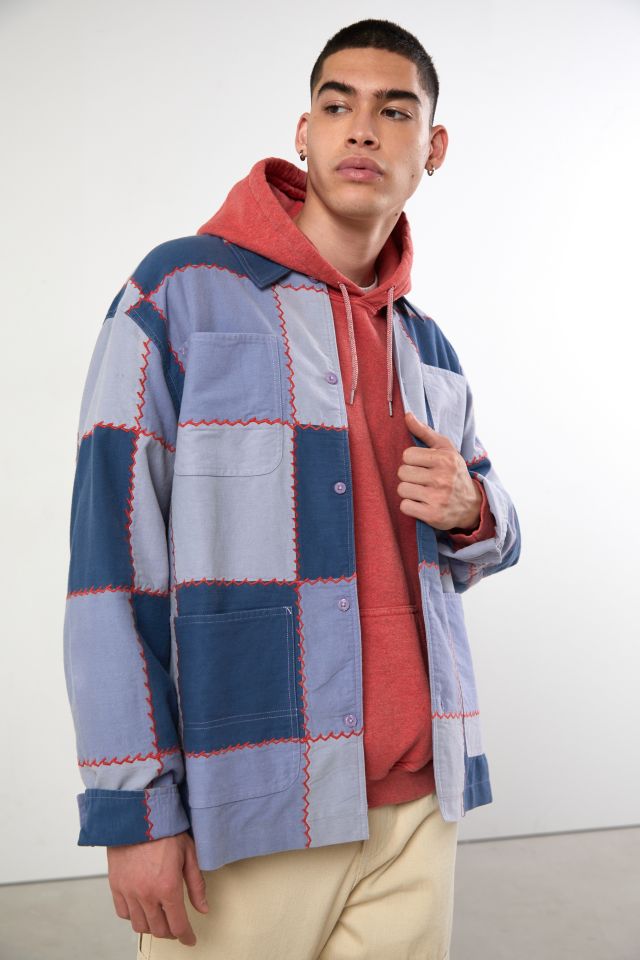 UO Patchwork Blanket Stitch Chore Shirt Jacket Urban