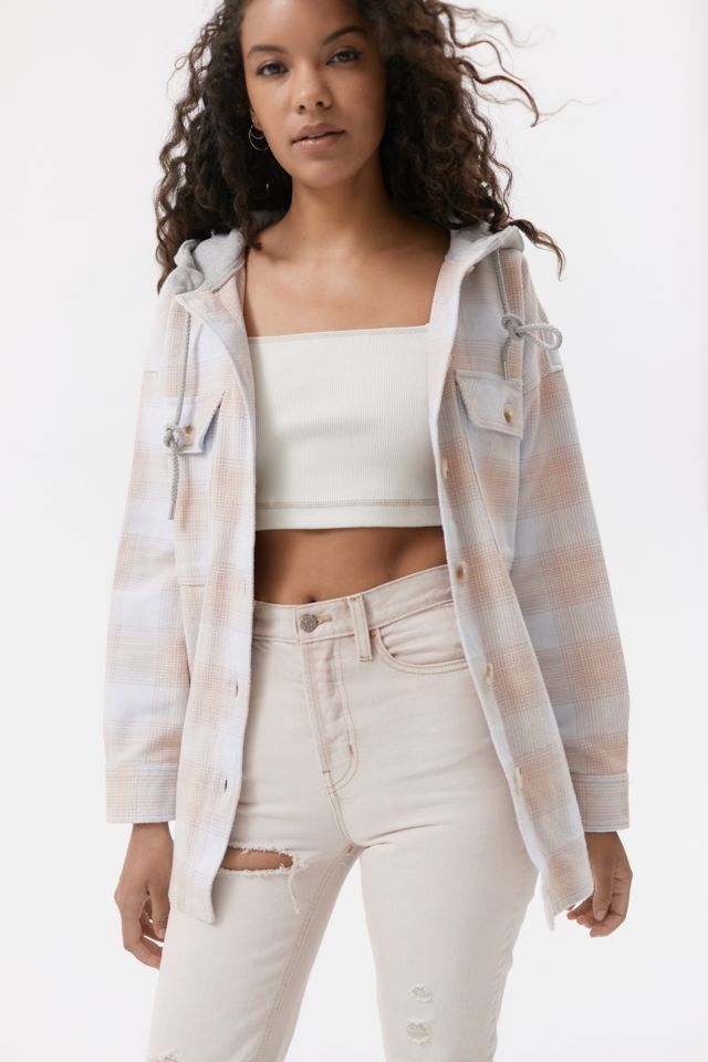 BDG Lydia Hooded Flannel Shirt Jacket Urban Outfitters
